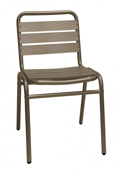 Model 1412 is an all-aluminum armchair featuring heavy gauge aluminum framing with a silver powder coat finish that will maintain its appearance for years in outdoor use. Fluted slats in seat and back are riveted to frame for maintenance free use. Structural joints are welded or feature through frame tie bars for extra strength in contract use. Mar resistant plastic glides protect pool decks and floor surfaces. Chairs stack for storage or to make room for floor maintenance.